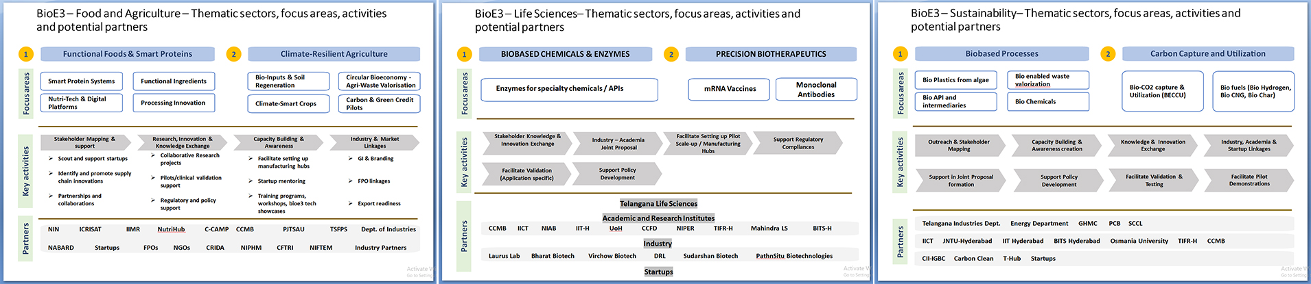 The Telangana BioE3 Cell is facilitated by Research and Innovation Circle of Hyderabad (RICH) in coordination with national agencies including the Department of Biotechnology, Government of India.