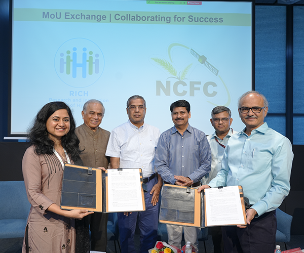 A two-day workshop jointly organized by RICH and the Mahalanobis National Crop Forecast Centre (MNCFC) explored how geospatial technologies—like remote sensing, GPS, and GIS—are transforming Indian agriculture. With over 3,000 AgriTech startups now driving digital innovation in crop management and automation, the session focused on bridging data gaps, improving awareness of data availability, and fostering collaboration to strengthen India’s digital agriculture ecosystem.