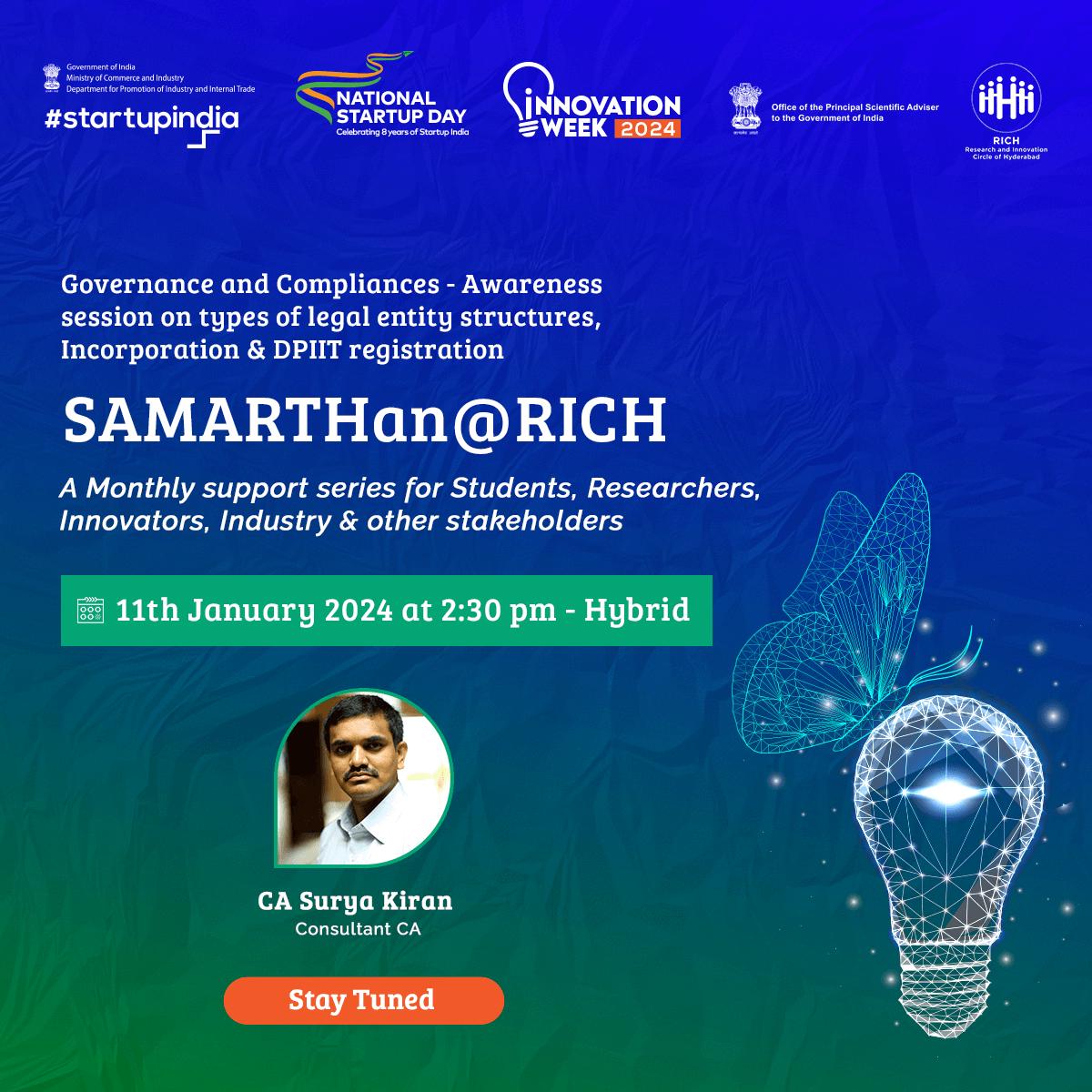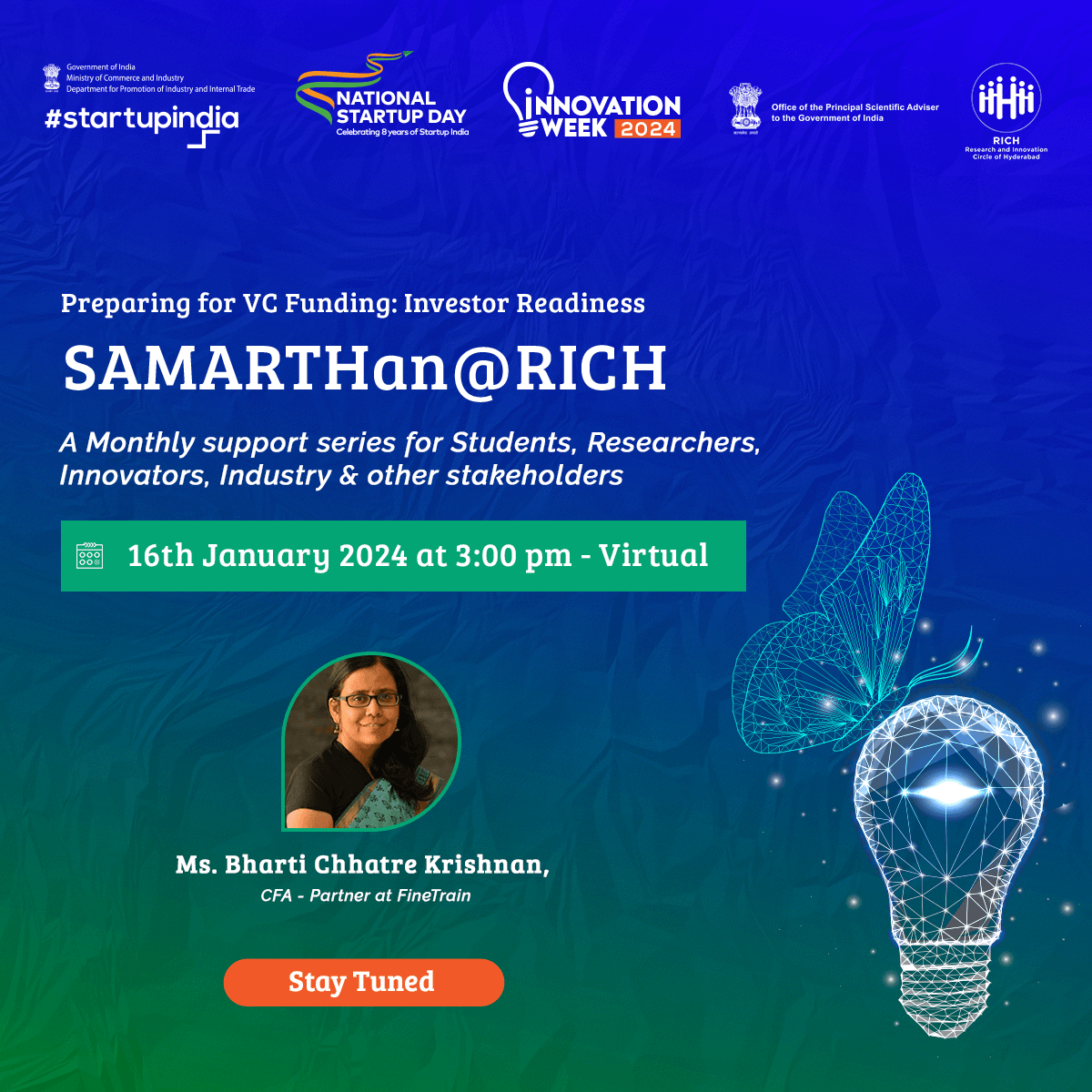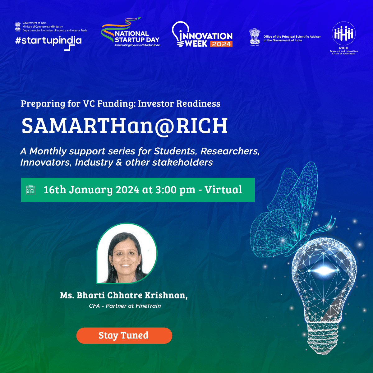 An annual flagship program of RICH offering hands-on workshops for aspiring entrepreneurs, researchers, start-ups, MSMEs, SMEs, and industry players. The series focuses on four tracks: intellectual property, regulatory, industry immersion, and clinical exposure. Each track led by experts in the field, providing participants with in-depth knowledge and practical insights into the various stages involved in scaling a proof-of-concept validated idea to a marketable product.